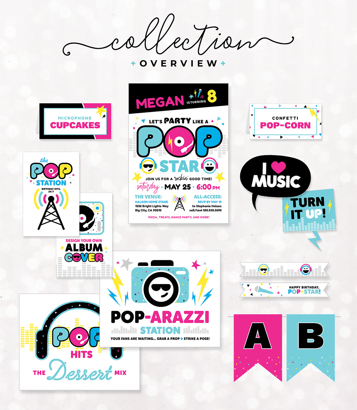 Pop Star Birthday PartyPrintable Party Collection$29 -