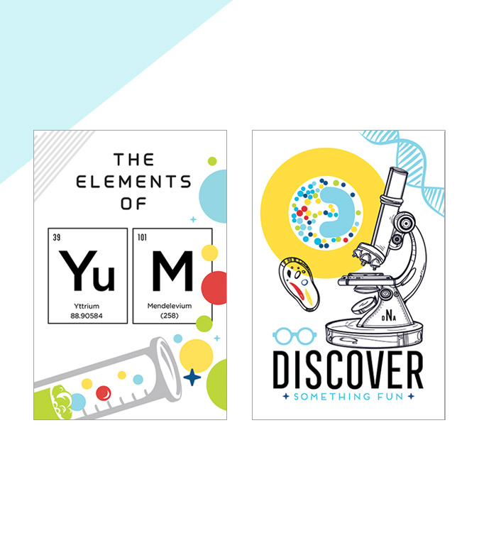 My Mad Science Birthday theme is filled with bright colors, curious energy, and lab-inspired illustrations –like beakers, atoms, bubbling formulas, and more. The look feels modern and imaginative. Perfect for kids who love discovery, creativity, and a little controlled chaos!