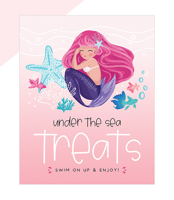 Darling mermaids, seashells, and coral reef details come to life in this charming underwater Mermaid theme. The palette feels pretty, magical, and feminine, with an illustrative style that invites imagination and wonder!