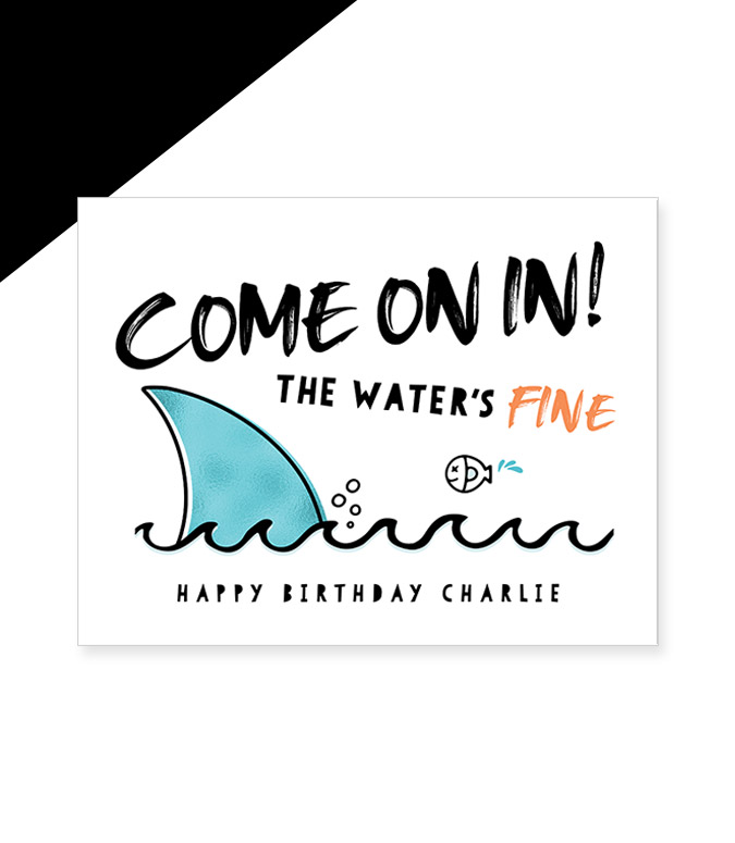 Create a playful shark birthday party featuring modern ocean motifs and clean, kid-friendly design. The look is fun and graphic without feeling overdone—perfect for ocean-loving kids.