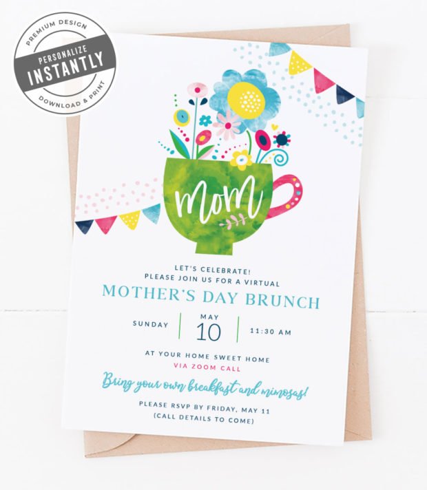 Personalize this lovely, printable tea party invitation – instantly! You can also download it as a jpeg to send or share digitally. Either way, your guests will love the thoughtfully designed details. 💛